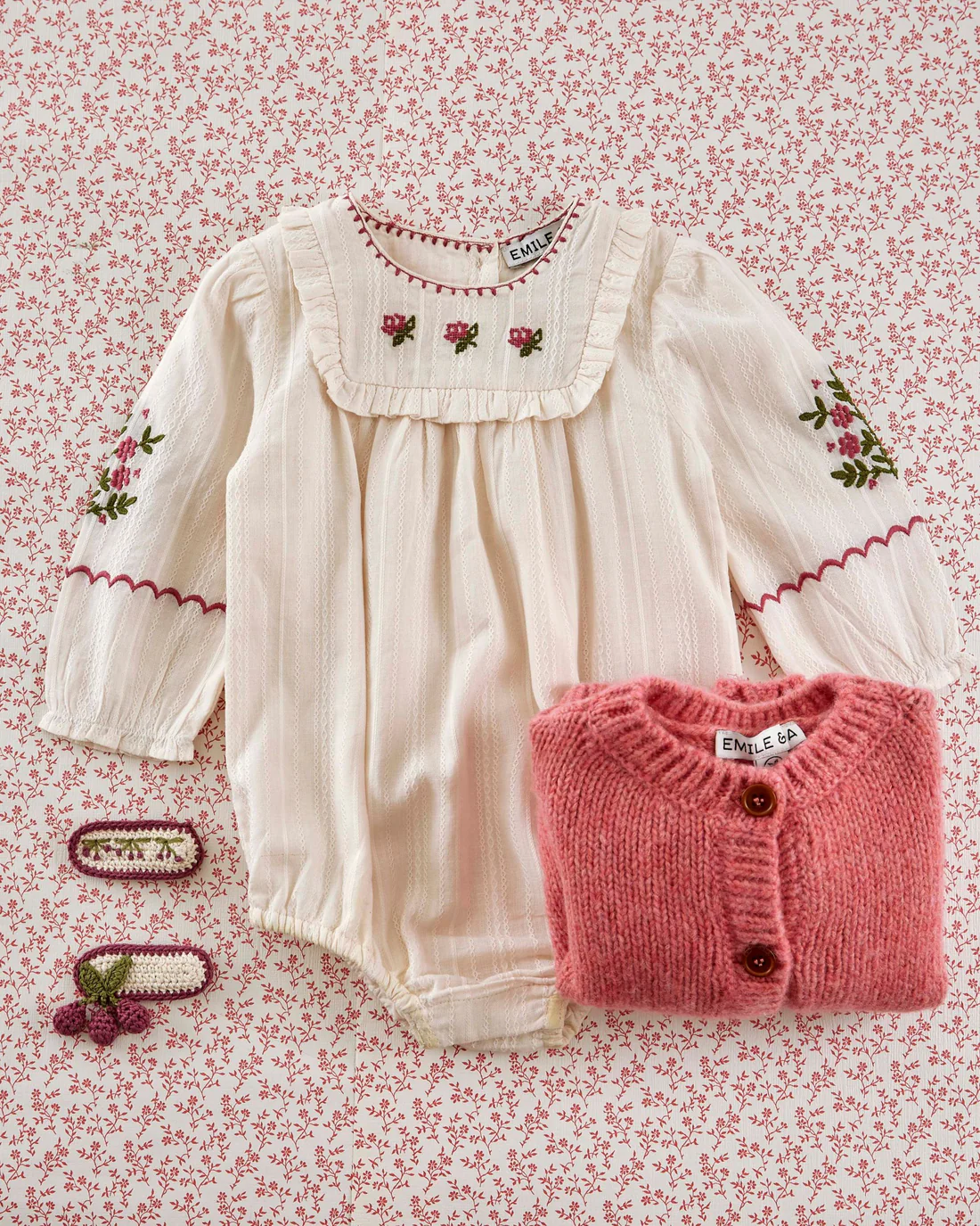 Cardigan en laine de mérinos et coton rose dont la douceur et le moelleux sont les maîtres-mots.