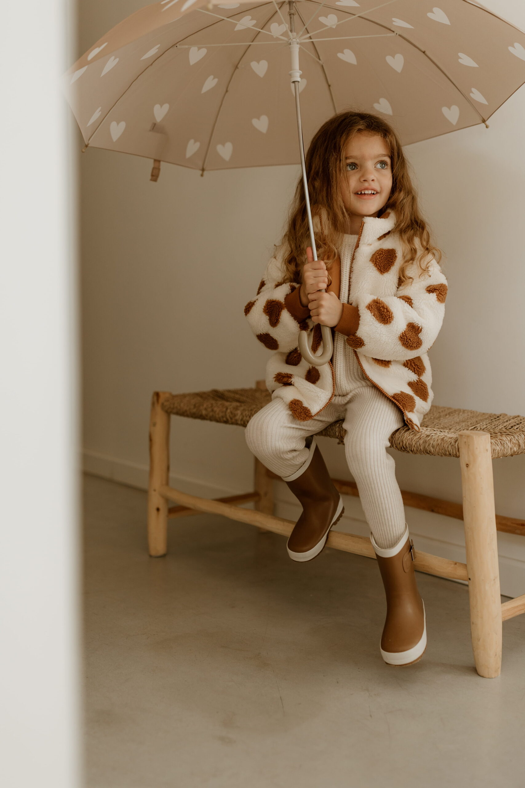 - Coloris beige, coeurs blancs