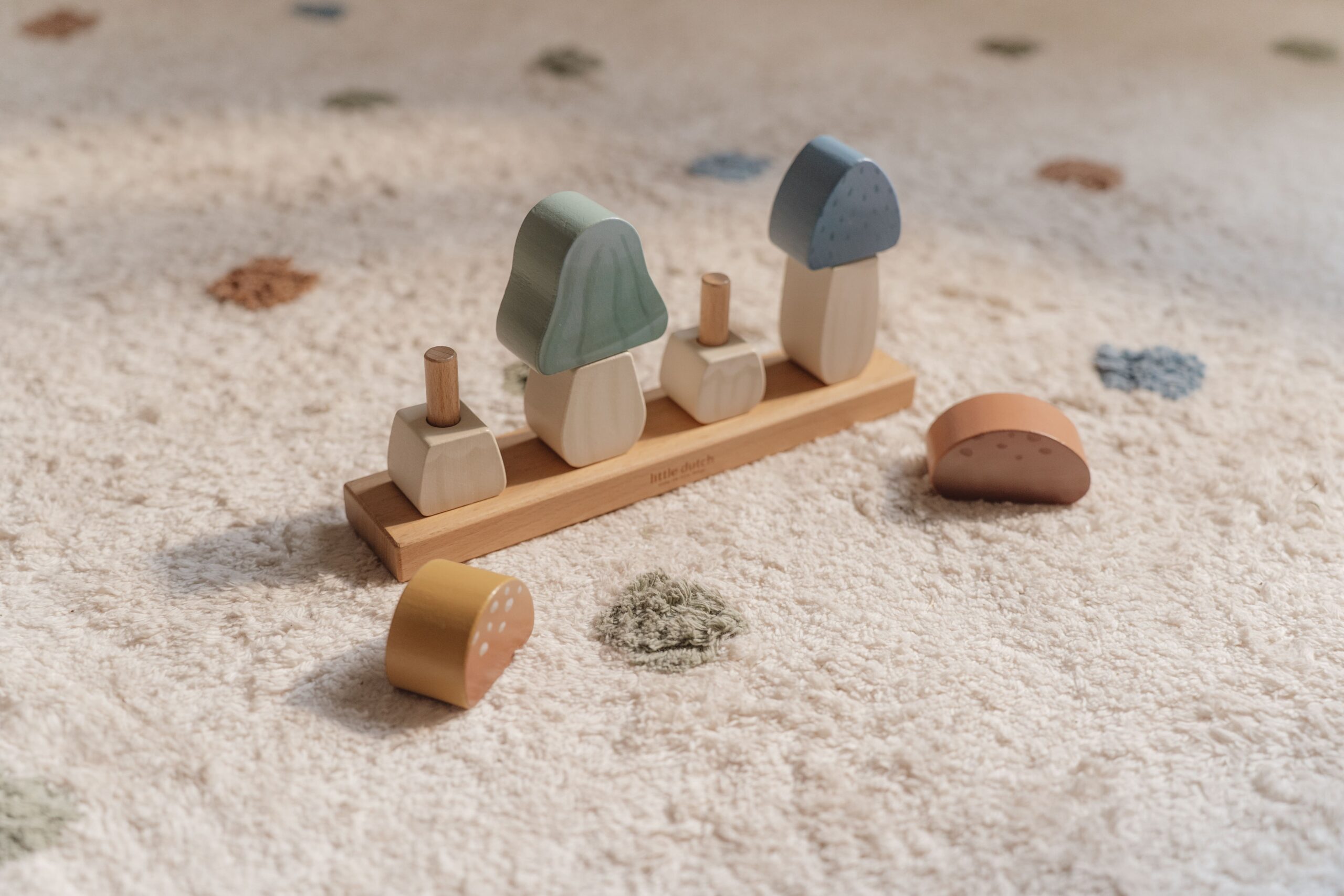 Construisons ensemble une forêt de champignons ! Assemblez les blocs et créez une rangée de quatre champignons enchanteurs de la collection Forest Friends. Un puzzle empilable amusant qui allie jeu et apprentissage, parfait comme décoration dans une chambre d’enfant.